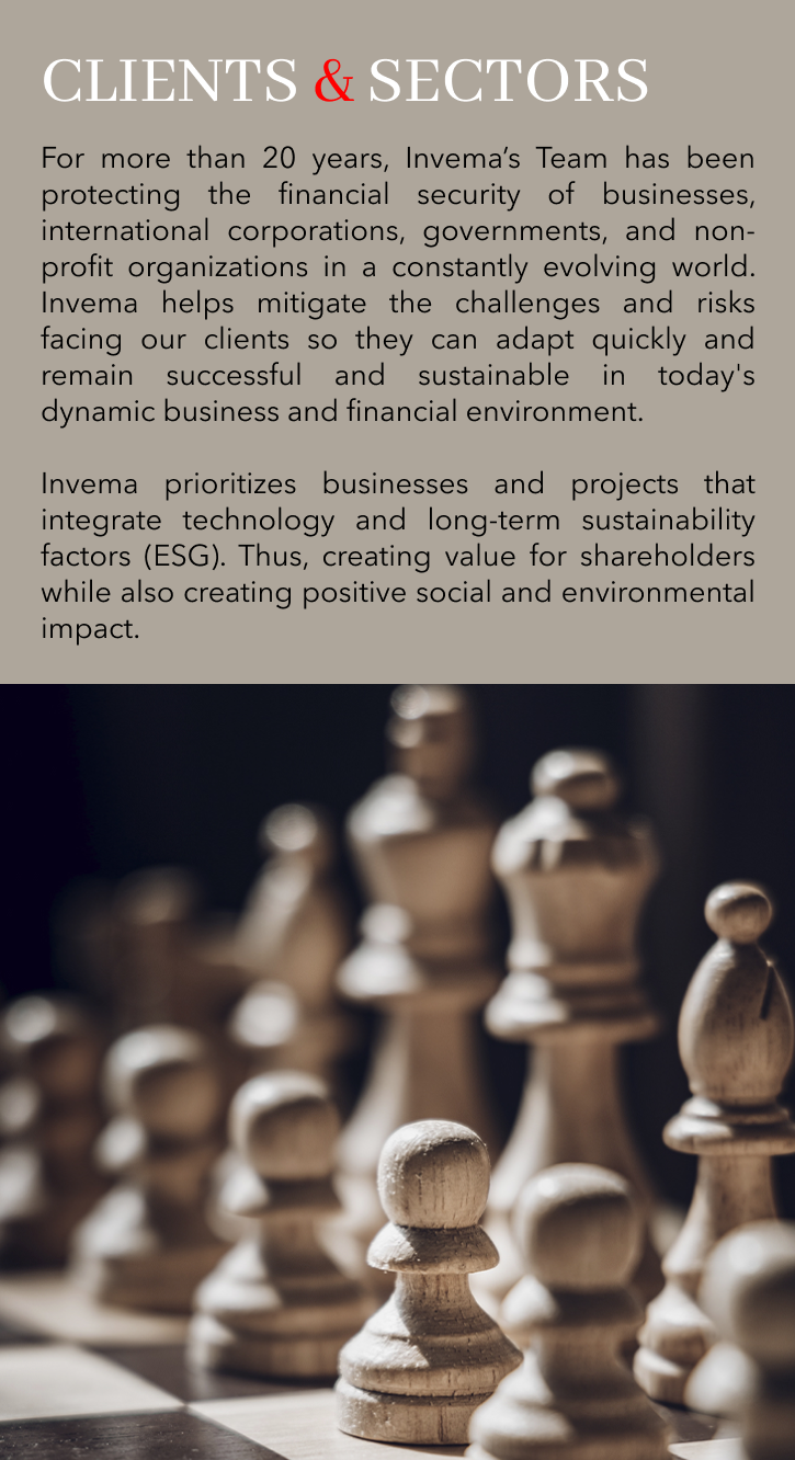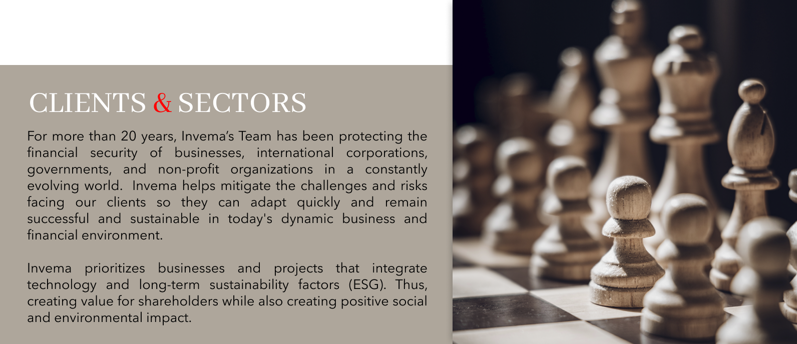For more than 20 years, lnvema’s Team has been providing trusted financial advice, consulting, strategic industrial and commercial solutions, and financing options for the increasingly sophisticated needs of our large Global client base. We offer cost-effective solutions that match our clients’ needs. We employ a rigorous and disciplined approach to designing the perfect solution tailored to the complexity of our clients’ financial goals and the countries where they reside and do business.